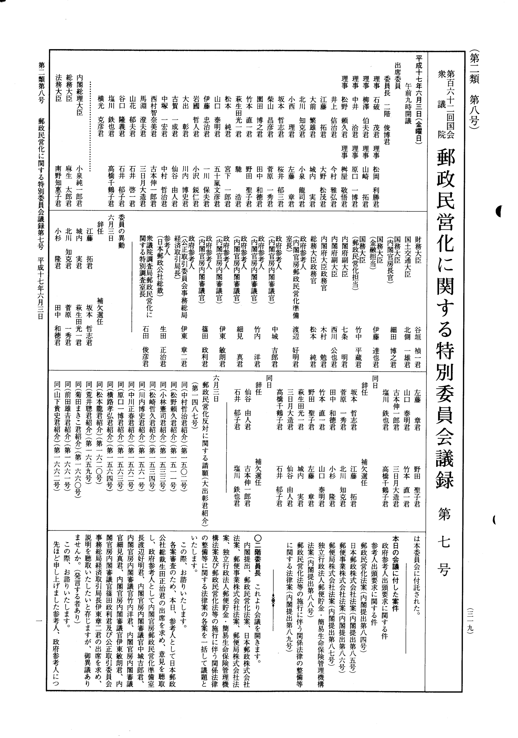 民主党の五十嵐文彦衆議院議員(当時)の平成17年6月3日の衆議院 郵政民営化に関する特別委員会で次のように発言している。